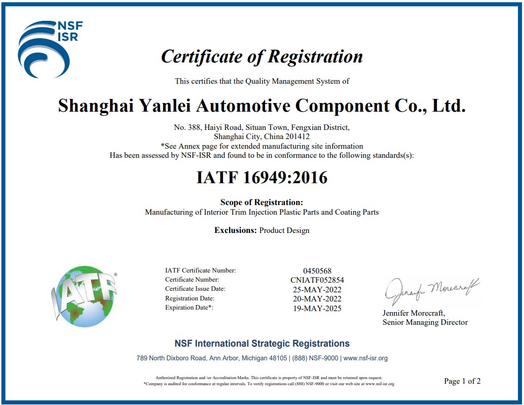 2019年5月份獲得了ITAF/TS 16949質(zhì)量管理體系認(rèn)證證書。
